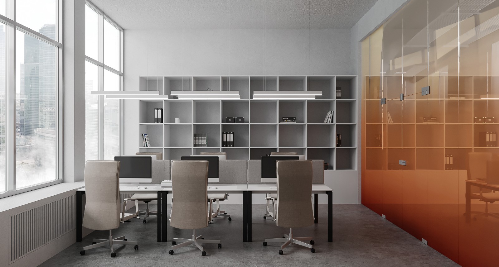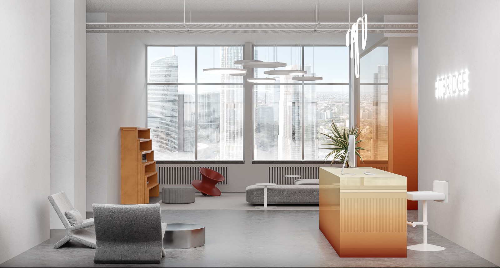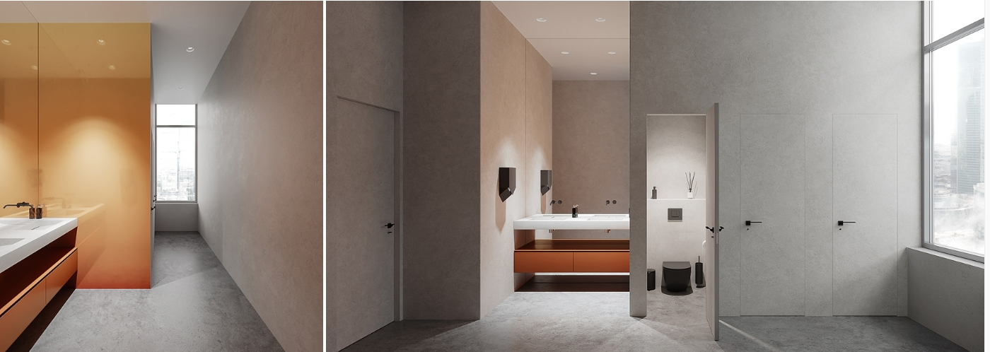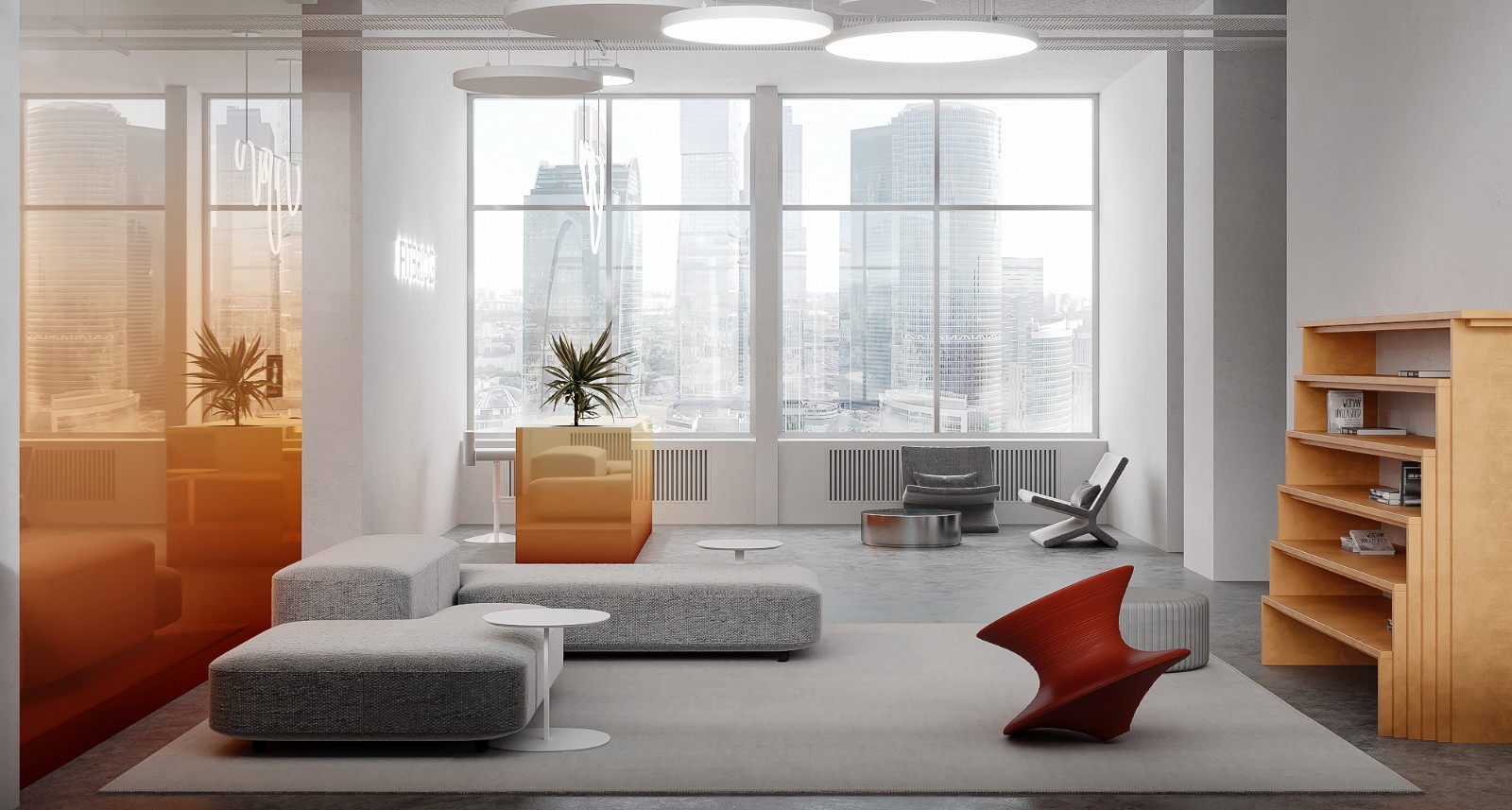 Having analyzed the company, as well as the average ages of the team (40+) and their needs, we decided to focus on simplicity and minimalism. Our team designed a coherent, monochrome space with no excess decor and visual noise, enhanced with polished metal constructions and other distinctive elements. Materials were implemented in their authentic state: concrete – rugged and textured, metal – rough and bare, wood – always genuine, never imitated.